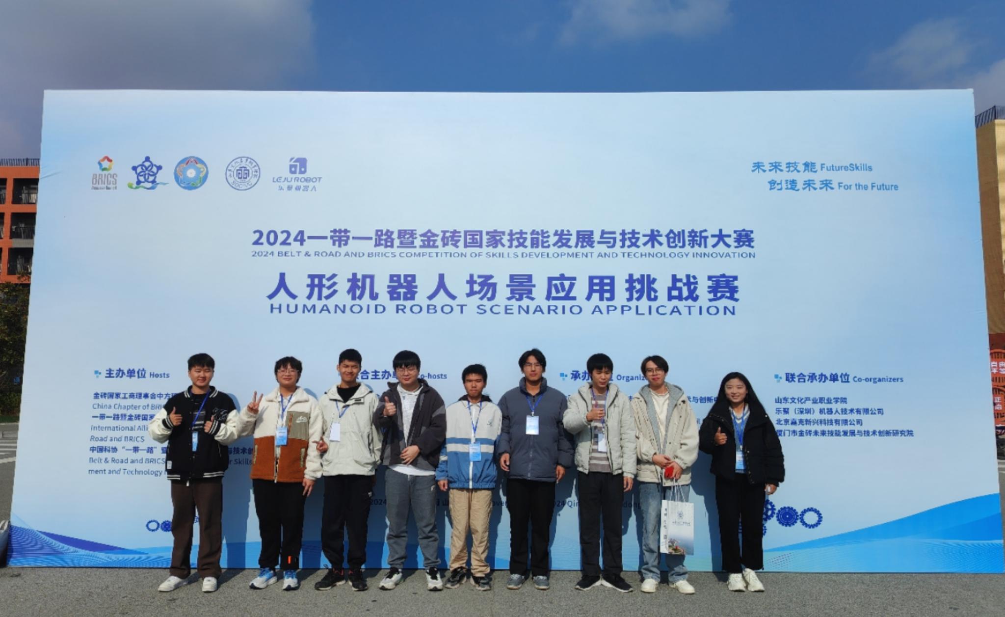 11月9日至10日,由金砖国家工商理事会中方理事会、一带一路暨金砖国家技能发展国际联盟、中国科协“一带一路”暨金砖国家技能发展与技术创新培训中心等联合主办的我校喜获2024一带一路暨金砖国家技能发展与技术创新大赛人形机器人场景应用挑战赛国内决赛,在山东青岛山东文化产业职业学院圆满落幕,本次比赛吸引了来自全国100多所职业院校的近1000名指导老师、参赛选手参赛。我校4支参赛队伍入围国赛决赛,经过两天现场激烈角逐,我校4支参赛队伍,分别获得一等奖1项,二等奖3项,同时我校获得“最佳组织奖”和“优秀组织奖”。