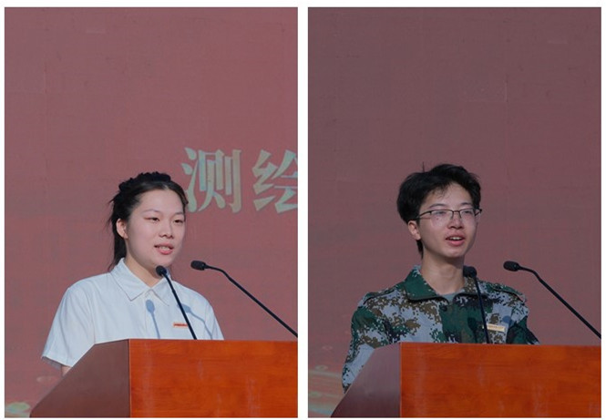 测绘地理信息学院215工测04班胡美霖、机械与电子工程学院25机自01班钟湶分别作为新老生代表发言。