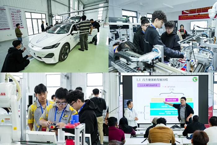在为期12天的密集培训中,44名马来西亚师生系统学习了智能网联汽车、工业机器人、毫米波雷达装调、智能产线控制及自动驾驶实车演练等前沿技术课程。通过“理论+实操”相结合的培训模式,学员们深入掌握了新能源汽车与智能制造领域的核心技能。
