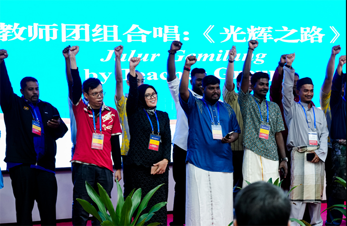 结业仪式上,师生团组联袂献唱的两首马来西亚歌曲——《光辉之路》和《感受爱》,展现了浓郁的马来西亚风情和中马文化的交融互鉴,赢得了现场阵阵掌声。