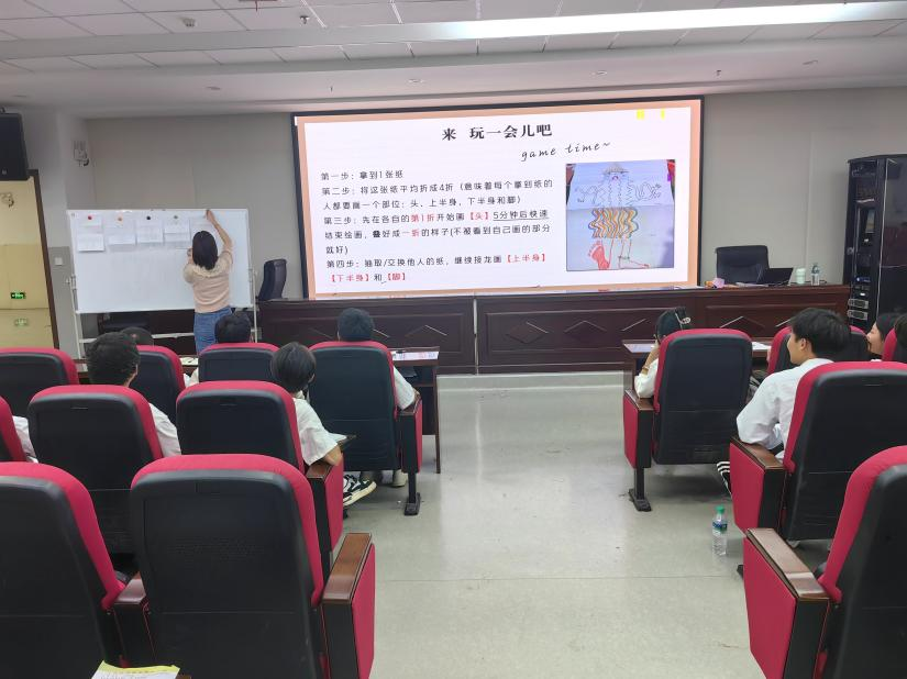 授课环节中,李欣阳以互动开场,激发同学们积极畅谈对美育美学的理解,现场气氛热烈活跃。在热烈的讨论之后,她凭借其专业视角对同学们的观点进行了精准的归纳总结,深刻阐释了美育与美学的准确内涵。同时,针对同学们普遍存在的 “美育仅仅是针对少数人的教育”“美育仅仅培养表现美的技能”“美育以及美学仅仅在课堂上实现”“美育仅仅是通过课程实现” 这四个误区,李欣阳一一给出了独到且深刻的见解。为了进一步加深同学们的理解,李欣阳还精心筹备了一个趣味小游戏。她强调,美育具有独特且不可替代的育人价值,适用于每一个人,主要体现在审美能力、美的表现力、对美的想象力以及道德情操等多个方面。