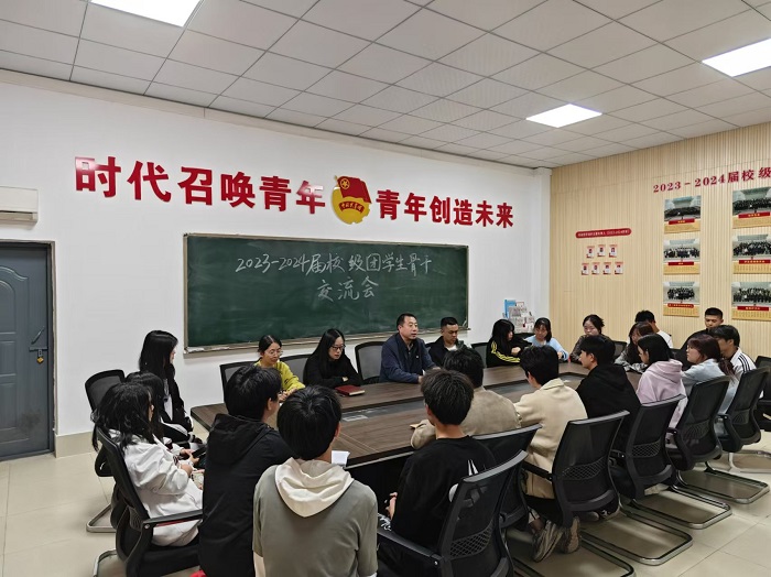 11月7日晚19时,校团委在8栋一楼学生干部工作室召开2023-2024届校级学生骨干座谈会。校团委教师团干、校团委、校学生会、学生社团团工委、学生自律委员会、大学生艺术团、第二课堂管理中心等2023-2024届校级主要学生骨干30余人参加。校团委书记杨毅兵主持座谈会。