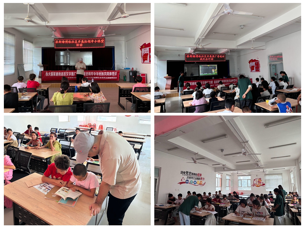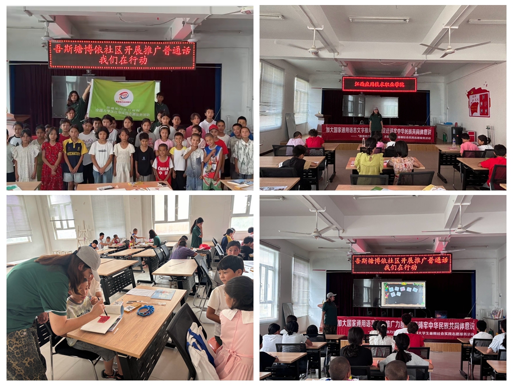 7月29日至8月7日,我校“紫水晶”“推普助力乡村振兴”实践队走进新疆维吾尔自治区泽普县奎巴格镇吾斯塘博依社区,开展“普通话进社区·语言通民心”主题活动。通过为社区小学生开设趣味普通话课堂、为居民提供语言文化普及服务,实践队以语言为纽带,推动民族交流与文化交融,为乡村振兴注入新活力。