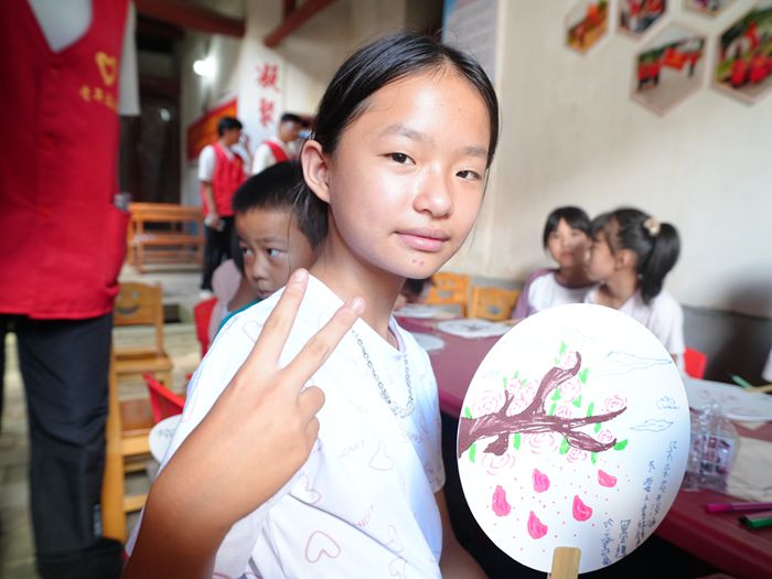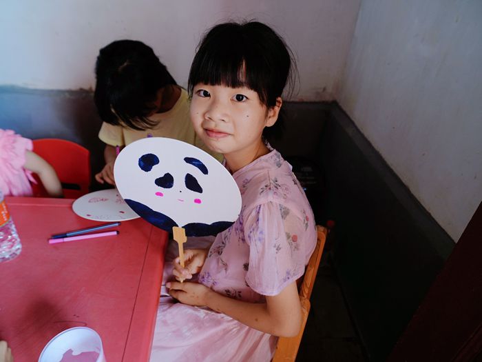 孩子们发挥天马行空的想象力,在团扇上绘制出花草、动物等图案,创作出独一无二的手工作品。拿着自己制作的团扇,孩子们脸上洋溢着自豪与喜悦。