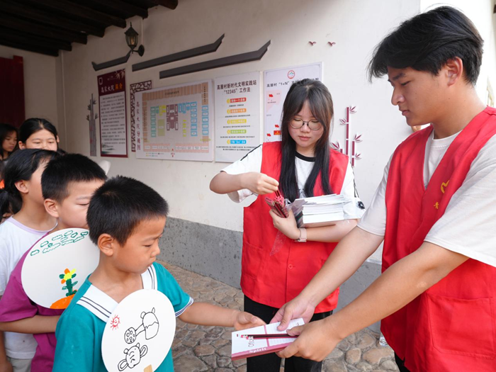为积极响应江西省关于开展“强国有我 青春有为”暑期社会实践活动暨2025年“万名大学生进千站”文明实践志愿服务行动的号召,6月29日,资源环境与珠宝学院“赤铁矿”志愿服务队赴安远县孔田镇高屋村新时代文明实践站开展文明实践志愿服务行动。