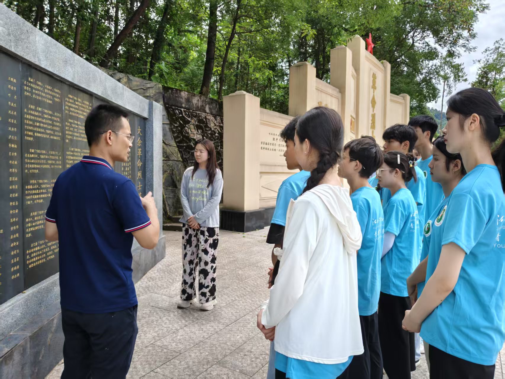 志愿者们怀着崇敬的心情前往位于金莲山大道的革命烈士陵园,瞻仰刘伯坚烈士陵墓。在庄严肃穆的陵园内,松柏苍翠,丰碑矗立,刘伯坚烈士的陵墓静静伫立,诉说着那段波澜壮阔的革命历史。志愿者们列队整齐,向烈士们鞠躬默哀,深切缅怀先烈的丰功伟绩。随后,马克思主义学院温铭珹老师深情讲述了刘伯坚烈士投身革命、为理想信念英勇就义的感人事迹。刘伯坚在艰苦卓绝的斗争中,始终坚守信仰,即使身陷囹圄,仍写下“生是为中国,死是为中国”的铮铮誓言,其崇高的革命理想和坚定的革命信仰深深打动了在场每一个人。“通过这次参观,我更加深刻地体会到今天的幸福生活来之不易。作为新时代青年,我们要赓续红色血脉,传承红色基因,让革命精神薪火相传。”刘诗婷在参观后动情地说道。