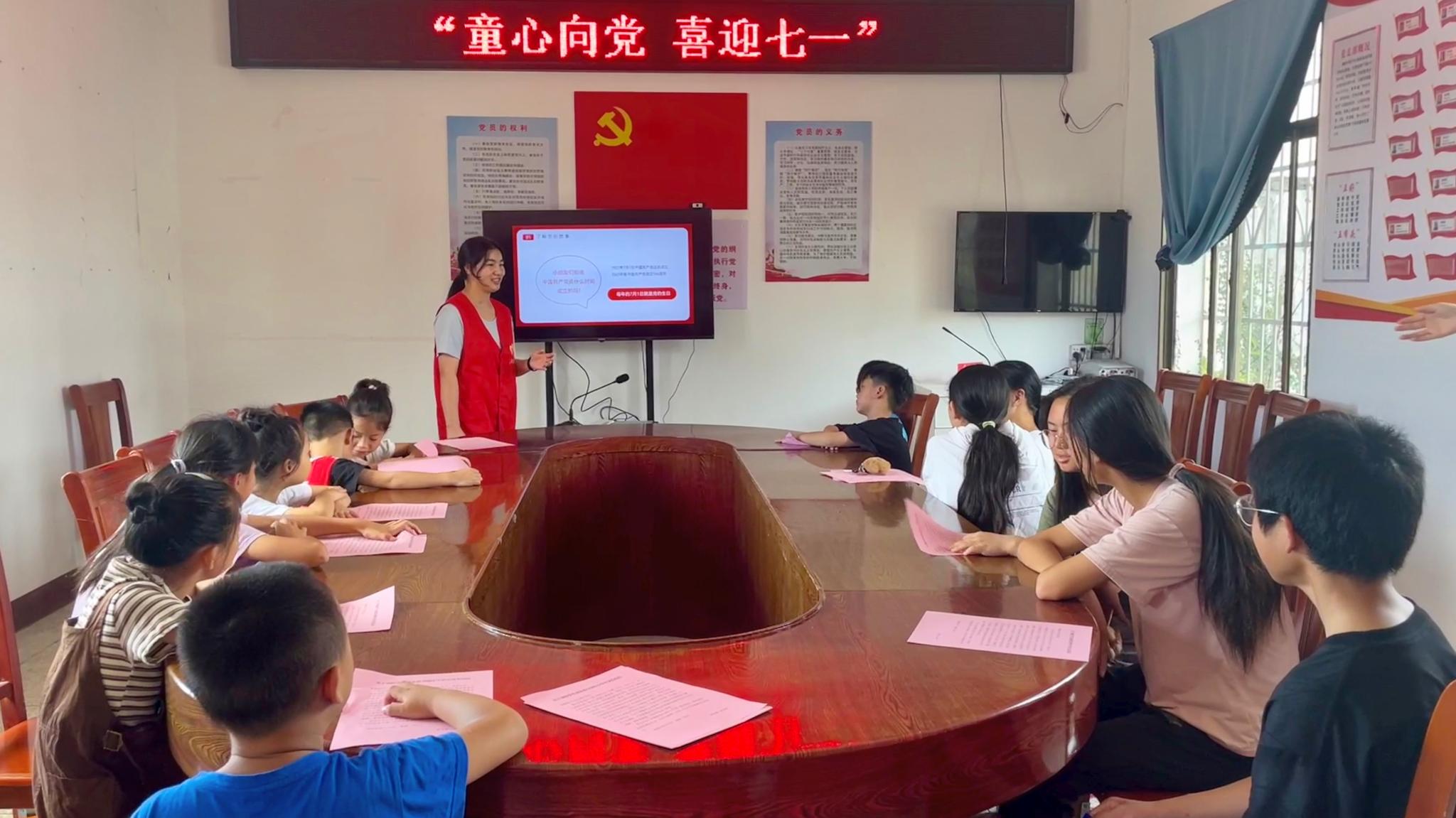 在南安镇建设村“村村播”志愿者化身“理论宣讲员”,以“童心向党 喜迎七一”为主题开展爱党爱国爱社会主义主题教育,教育引导建设村的孩子们热爱党热爱祖国热爱社会主义,在孩子们幼小的心灵播种下红色信仰的种子,在实践环节,志愿者们和孩子们一起画党旗,用实际行动向党的生日献礼,现场洋溢着幸福热烈的氛围。