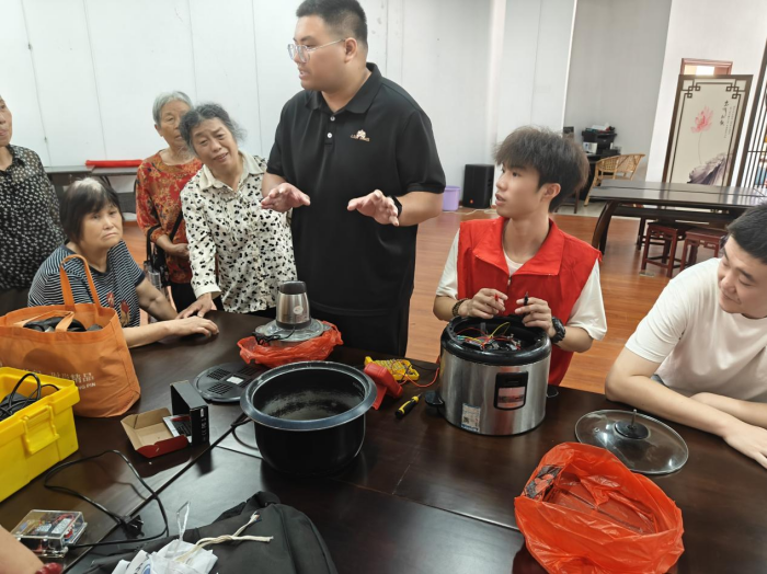 服务队搭建了“匠心维修驿站”,推动课堂知识服务民生。服务队化身“家电医生”,运用万用表检测、3D打印零件、精密焊接主板等专业技能,修复电风扇、微波炉、儿童玩具等故障电器,并普及家电养护常识。维修间隙开设微课堂,传授“农机雨季防潮”“电器待机断电”等保养技巧,切实降低村民用电成本。“学生娃手艺真扎实!”看着修好的抽水泵,李大爷竖起大拇指。