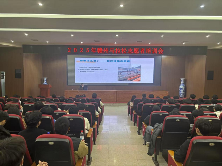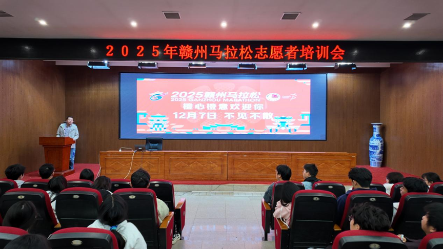 为保障2025赣州马拉松比赛顺利进行,提升赛事整体服务水平,12月1日,学校2025赣州马拉松志愿者岗前培训在黄金校区图书馆报告厅顺利开展,团市委学少部部长张珏、校团委书记杨毅兵及赛事培训导师王宇恒出席活动,全校215名志愿者参加培训。