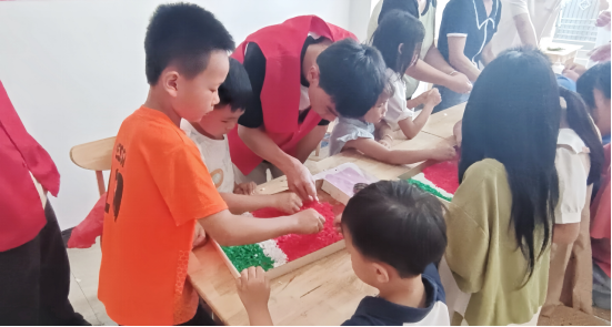 在教育宣讲活动开始前,“赤铁矿”志愿服务队的同学们通过组织粘土小游戏与站塘村的小朋友们进行了互动,让他们在动手操作中发挥想象力和创造力,同时也拉进了与小朋友之间的距离,为后续教育宣讲营造积极的氛围。