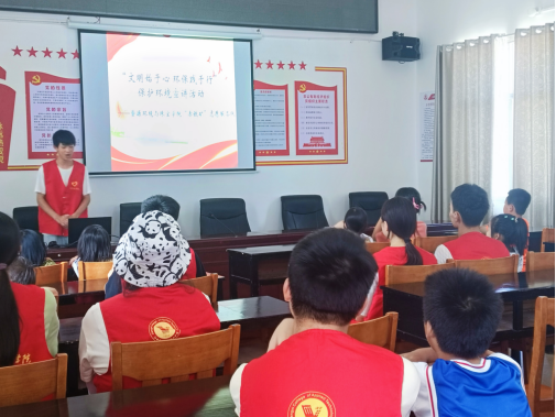 黏土游戏结束后,志愿服务队的成员围绕环境保护、交通安全、防溺水三个方面向孩子们进行了教育。首先,服务队成员向孩子们讲解了环境保护的重要性,提醒他们珍惜资源,保护生态环境。其中还通过实例讲述了环境污染对生活的影响,让孩子们认识到环境保护的紧迫性。