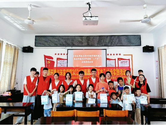 活动结束后,志愿者们还为孩子们发放了学习用品。据了解,截止目前为止,资源环境与珠宝学院“赤铁矿”志愿服务队已在崇义县、会昌县等服务队成员的家乡所在地围绕留守儿童开展了暑期“三下乡”系列活动,重点从学习、心理、安全等涉及孩子成长发展的领域出发,目前受众儿童达50人次。接下来,服务队将继续在其余成员的家乡,持续开展相关活动,切实发挥青年服务基层的力量与智慧。