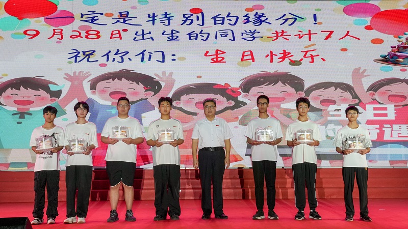 党委书记张家菁为当天生日的7位新生送上了生日蛋糕,数千名师生挥动着手中的荧光棒齐唱生日歌,送上最真挚的祝福。温暖的灯光、悠扬的歌声、真挚的笑容,构成了晚会上最动人的画面之一。