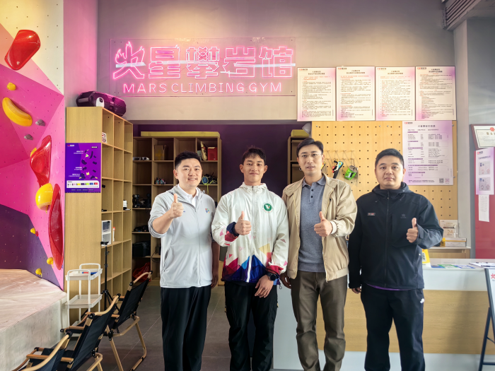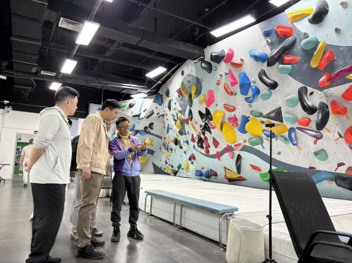 在此期间,调研组一行走访了攀岩产业学院合作企业——超级限攀岩馆、火星攀岩馆,与企业负责人座谈交流,围绕人才培养、课程共建、教师实践、学生实习与就业等方面进行深入探讨。杨潮兴表示,攀岩产业学院要坚持“校企协同、产教融合、服务产业”的建设方向,进一步拓展合作渠道,打造更高质量的实习实训与就业平台。