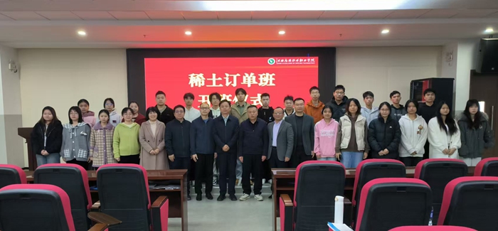 学校产教融合中心主任、材料工程学院、机械与电子工程学院、中稀(赣州)稀土新材料有限公司综合部相关负责人,校企双方代表与25名“稀土订单班”学员参加仪式。