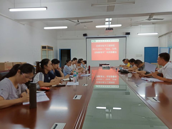 9月11日晚,机电学院于东实训楼学院会议室召开“安全、文明、法制教育月”教职工动员大会。机电学院党总支副书记李健主持会议,全院辅导员、班主任参加会议。会议传达了学校文件精神,讨论确定了学院教育月活动方案,对教育月各项工作做了具体全面的部署。要求全体辅导员、班主任加大宣传力度,积极发动学生,从严从实从细做好教育月各项工作。