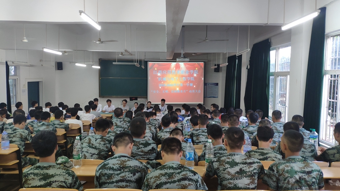 9月11日,机电学院于1栋1楼多媒体教室召开“安全、文明、法制教育月”学生干部动员大会,学院团总支书记江玮主持会议,学院各年级辅导员及学生代表共计100余人参加会议。江玮要求各学生干部要积极参与学院管理,带头教育引导同学自我教育、自我管理、自我约束,营造安全重于一切的氛围,培育健康文明的行为习惯,在参与活动的过程中让安全、文明、法制意识得到有效提升,会上还强调了环境卫生整治、垃圾分类、防范网贷等活动的重要意义。