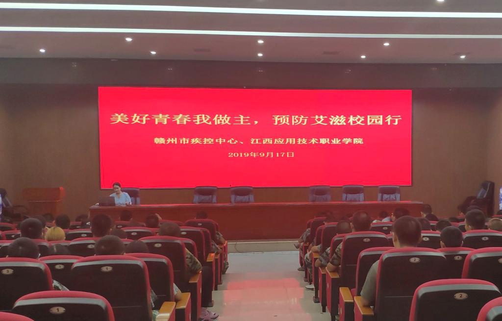 9月17日,学校医务所联合赣州市疾病控制中心在图书馆学术报告厅举办新生艾滋病防治知识讲座。本次讲座特邀赣州市疾病控制中心艾防科副科长杨荣荣主讲,学校后勤中心副主任郭鹃主持,2019级新生200多名学生代表参加讲座。