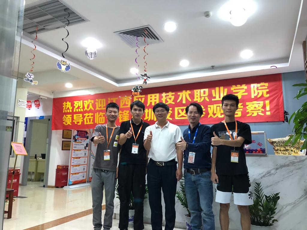 陈友福一行来到北京千锋互联科技有限公司深圳分公司,受到赖一宏总经理热烈欢迎。一到公司,陈友福就去看望实习学生,与学生亲切交谈,询问学生生活、顶岗实习情况;通过与公司领导、专家的交流,了解了市场人才的需求、ICT行业发展方向,为信息学院对接岗位市场需求、完善人才培养方案、深化教育教学改革具有促进作用。