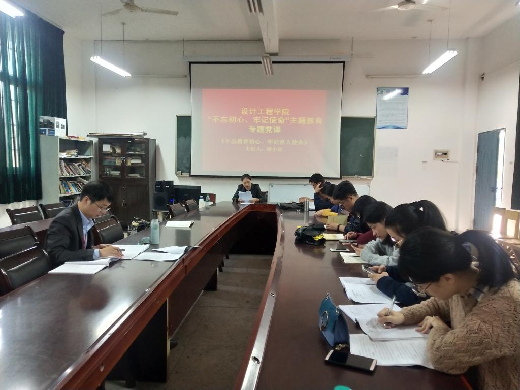 近日,设计学院党总支组织召开“不忘初心、牢记使命”主题教育对照党章党规找差距专题会议,设计学院全体党员参会,会议由学院党总支副书记曾晓亮主持。学院领导班子紧紧围绕这次主题教育的根本任务、总体要求和五个方面的具体目标,向全体党员上了专题党课,接着教师党支部、学生党支部全体党员紧扣“十八个是否”,结合自身实际,逐条逐项进行了自我检查和检视反思,对存在的问题进行深入剖析,提出今后的改进措施。