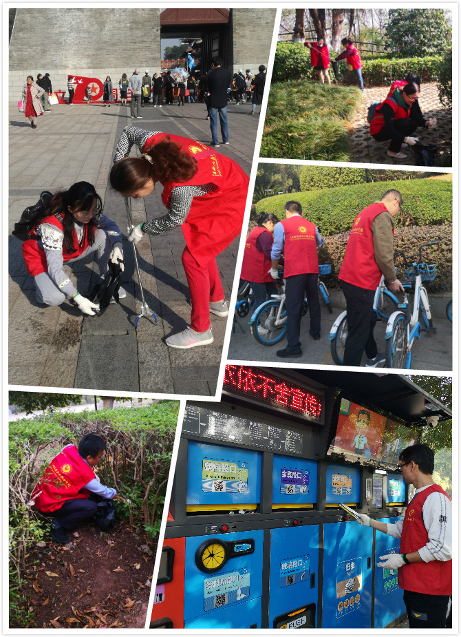 活动过程中,党员志愿者们热情似火,干劲十足,发扬不怕苦、不怕脏的精神,对景区内的杂物、烟头、塑料和纸屑等杂物进行了全面清扫。同时,将道路两边摆放凌乱的自行车、电动车摆放整齐,用劳动的汗水换取了景区周边优美、洁净的环境。这次主题党日活动,全体党员用实际行动践行初心使命,增强了党总支的凝聚力和战斗力。此次活动不是终点,社会学院党总支将继续发扬党员先锋作用和志愿服务精神,守初心,担使命,为创建国家卫生城市助力,为美化城市环境增添力量。