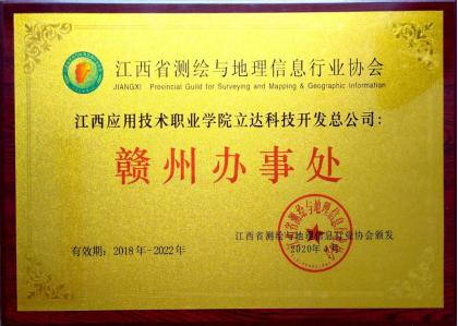近日,立达公司被江西省测绘与地理信息行业协会授予“副会长单位”“赣州办事处”荣誉牌匾。