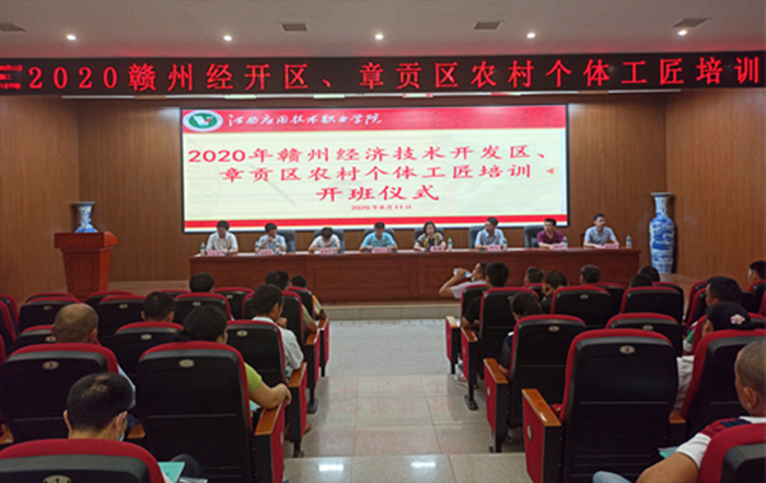 8月11日,赣州经济技术开发区、赣州市章贡区2020年农村个体建筑工匠培训在江西应用技术职业学院顺利开班,本次培训由赣州经济技术开发区住建局和章贡区住建局主办,由江西应用技术职业学院建筑工程学院承办。来自赣州经济技术开发区和赣州市章贡区各个乡镇的近60名个体工匠师傅参加了此次培训,开展本次培训是为了提升农民自建房质量安全管理水平,为建设一支有文化、懂技术、会操作、保安全的村镇建筑工匠队伍打下坚实基础,让广大农民能住上安全房、放心房。