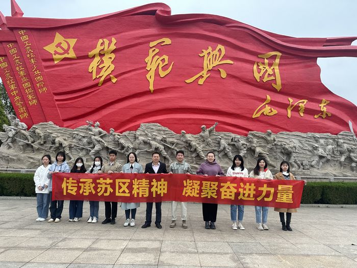 为进一步深入学习贯彻党的二十大精神,切实提高工作室成员的思想认识和理论水平,传承红色基因,赓续红色血脉,3月19日,马克思主义学院树魂·起航育人工作室14名师生赴兴国县开展以“传承苏区精神 凝聚奋进力量”为主题的红色走读活动。