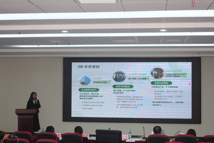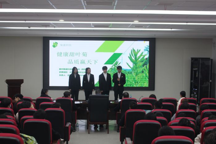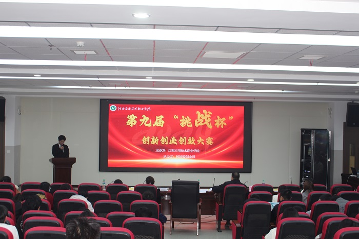 1月11日,我校在11栋多媒体楼401举行第九届“挑战杯”创新创业创效大赛决赛。本次大赛评委由学工部部长赵薇、江西金力永磁科技股份有限公司张婷华、团委书记杨毅兵、职业技能中心阮艳、宣传部谢若闲担任,来自全校各学院共12支参赛队伍参加了此次决赛现场答辩。