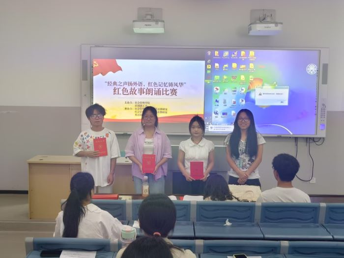 6月13日,由社会管理学院、学生社团团工委、商务英语教研室、公共外语教研室联合主办,英语协会承办的“经典之声扬外语,红色记忆铸风华”红色故事英语朗诵比赛在11栋505教室成功举办。