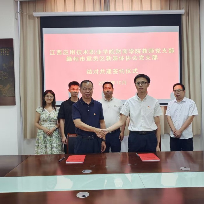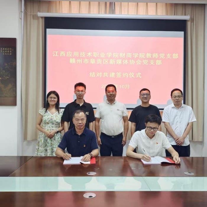 10月15日,我校财经与商务学院教师党支部与赣州市章贡区新媒体协会党支部成功举行结对共建签约仪式。此次签约标志着双方在党建引领下协同发展迈出了实质性步伐,开启了高校基层党组织与地方行业协会党组织资源共享、优势互补、合作共赢的新篇章。