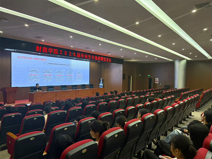 为扎实推进2026届电商专业学生实习与就业工作,拓宽毕业生就业渠道,10月13日晚上7时30分,财商学院在图书馆学术报告厅举办电商行业专场招聘宣讲会。活动特邀江西萌客网络科技有限公司与义乌市言睿网络科技有限公司两家企业代表进校宣讲,财商学院23级电商01至04班全体学生参与本次活动。