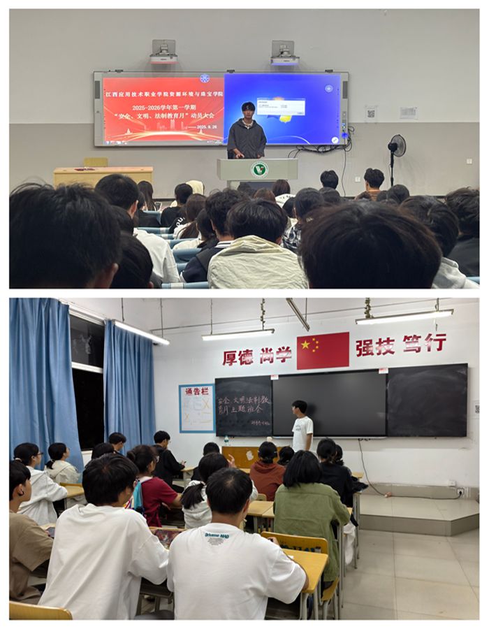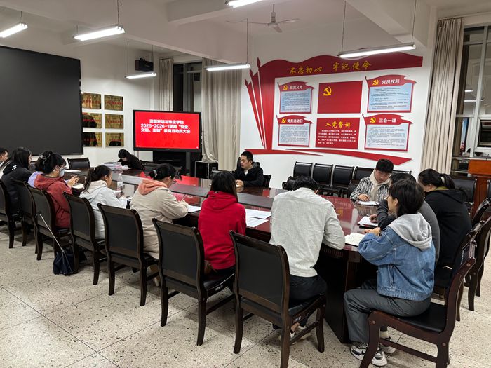 为深入贯彻落实立德树人根本任务,助力学生思想政治教育工作精细化、精准化,资源环境与珠宝学院积极响应学校2025-2026学年第一学期“安全、文明、法制教育月”活动部署,近日系统召开教职工大会、学生动员大会、班级主题班会,全面启动教育月相关工作。