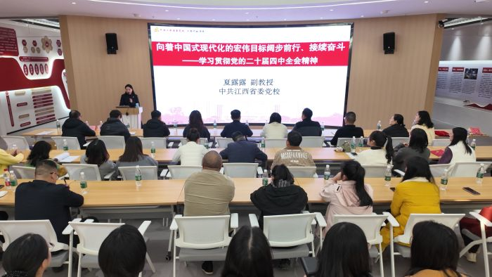 随后,省委党校国家治理教研部夏露露同志围绕《向着中国式现代化的宏伟目标阔步前行、接续奋斗——学习贯彻党的二十届四中全会精神》作专题党课宣讲。夏露露同志系统解读了全会精神的核心要义与实践要求,引导全体党员进一步统一思想、明确方向,增强服务地方发展、投身教育事业的使命担当。最后,在讲解员的引导下,全体人员参观了学校党建成果展示馆与“红色地矿文化”展示馆,深入了解学校在党建引领下取得的办学成就与校本特色文化,感受学校“攀登者”党建品牌的内涵与活力。