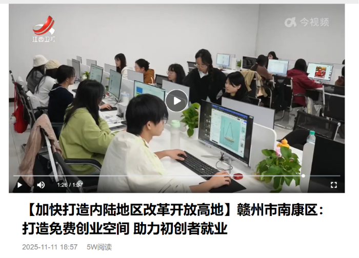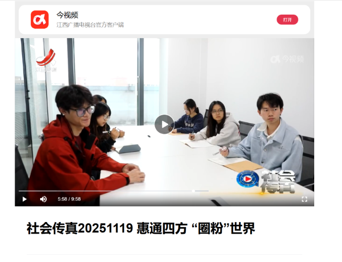 近日,我校财经与商务学院2023级电子商务专业学生在赣州国际陆港“赣州大学生跨境工厂项目”中的出色表现与就业创业成果,获得江西卫视关注并先后在《社会传真》及“加快打造内陆地区改革开放高地”专题报道中播出,充分展示了我校在产教融合、服务地方发展方面的育人成效。
