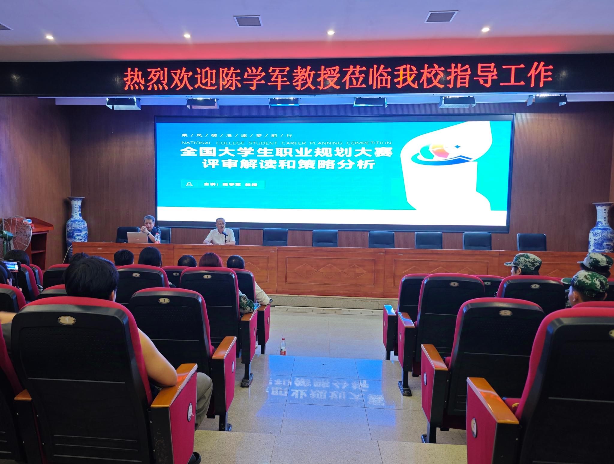 陈学军就全国大学生职业规划大赛方案、要点分析和参赛注意事项等作了全面解析,结合丰富的指导经验,通过详实的案例向在场师生讲解赛事背后逻辑与职业规划的重要意义,他指导同学们要正确及时认识当前就业形势,尽早开展个人职涯规划,在校期间积极提升自我,为未来就业打下良好基础。