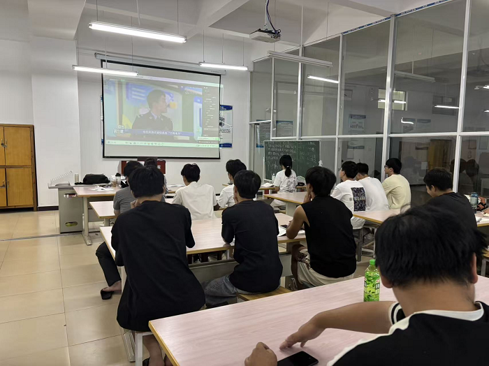 9月16日上午9时,学院组织新生在多媒体教室集中收看了由公安部刑侦局、国家反诈中心、央视频等权威平台联合推出的“反诈第一课”直播讲座。同学们通过大屏幕同步观看,认真学习反诈知识,了解当前高发的电信网络诈骗类型和防范技巧。直播过程中,同学们聚精会神,不时记录关键内容,现场学习氛围浓厚。
