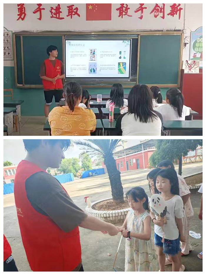 在江西省南昌县向塘镇向塘小学,服务队队员们开展了内容丰富的地学科普活动。志愿者在普及基础地质知识的同时,重点结合生活实际,通过精心设计的课件向孩子们详细讲解了垃圾分类的意义与方法,呼吁大家积极参与环境保护实践。活动寓教于乐,孩子们在收获新知之余,也获得了铅笔等学习用品奖励,喜悦之情溢于言表。