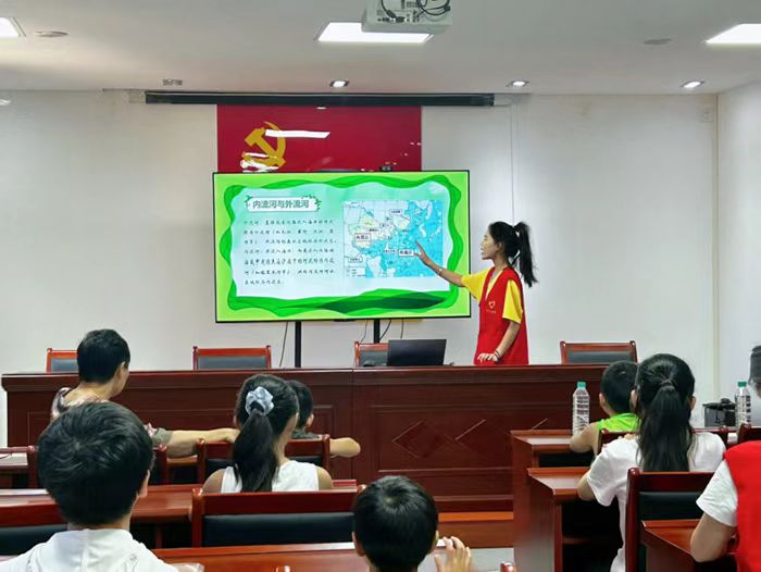 随后,志愿者借助精心制作的PPT课件,系统科普地球的湖泊与河流知识。从湖泊的成因类型到河流的生态系统,从水资源的分布特征到生态保护的具体意义,讲解内容层层深入,引导孩子们认识到湖泊与河流对地球生态的重要性,切实提升了他们的生态保护意识。