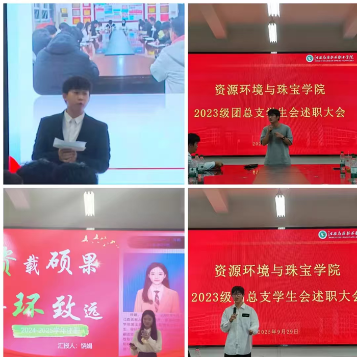 为全面总结过去一学年的工作成果,规划未来发展蓝图,资源环境与珠宝学院于9月29日晚在西实训楼1302召开2023级团总支学生会述职大会。23级、24级团总支学生会成员及团学指导老师肖瑶参会。