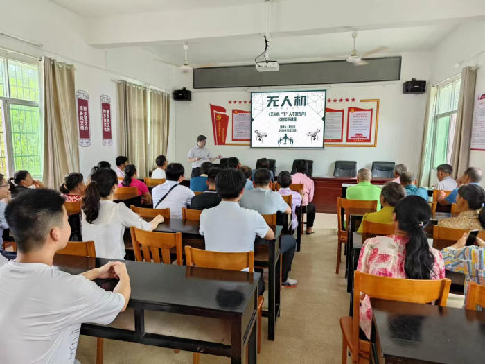 随着科技的飞速发展,无人机技术得到极大普及,正逐渐走进我们的生活,广泛应用于各行各业。在广袤的农村地区,无人机技术在精准施肥和喷药、农林植物保护、农田监测和评估、森林防火巡检等方面发挥了重要作用。在为了让社区居民更好地了解和掌握这一新兴技术,同时对无人机飞行管理有关规定有所了解,以便使居民合规地使用无人机,测绘地理信息学院结合自身专业特点,于10月22日在学校乡村振兴帮扶村——会昌县站塘乡站塘村开展以“无人机‘飞’入千家万户”为主题的社区教育培训公益讲座,500余人参加了此次培训。讲座由测绘学院专业教师,同时也是学校乡村振兴驻村工作队第一书记陆金平担任培训教师。
