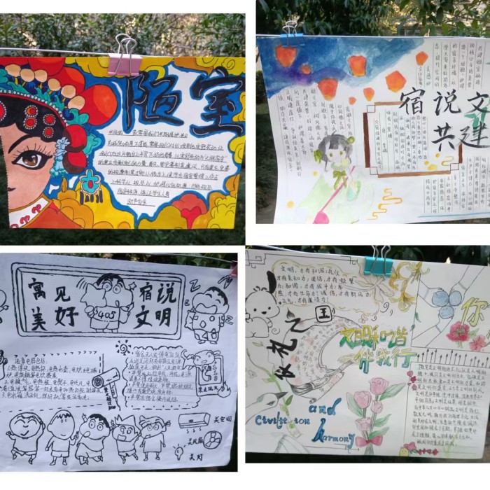 10月20日,开展了“宿”说文明,共建“雅”室,手抄报活动,活动以宿舍为单位,共收到作品90余份,每一幅作品视觉效果美观,创意新颖,紧扣主题,丰富的色彩和线条勾勒出心中美丽的宿舍,描绘了宿舍生活温馨的故事。此次活动共选出优秀作品12余幅。