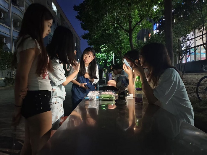 走进跳蚤市场,同学们带来了闲置的书籍、球拍、键盘、手工艺品等物品。五花八门,种类繁多的闲置物品,吸引了许多同学前来购买,卖家们热情地介绍着自己的物品,努力促成交易。在密集的人群中,偶尔传来一阵阵吆喝声,更为夜间的集市增添几分热闹。