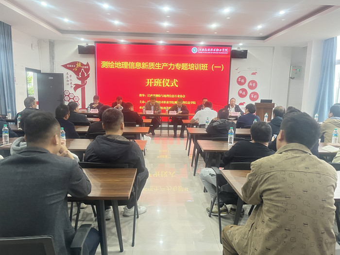 11月1日,在这橙黄橘绿的深秋时节,测绘地理信息新质生产力专题培训班在我院顺利开班。江西应用技术职业学院科技服务中心主任、江西省测绘与地理信息行业协会副会长李福平、测绘地理信息学院主持工作副书记李彦鹏、测绘地理信息学院副院长明东权,核工业赣州工程勘察设计集团有限公司副总经理、测绘地理信息与规划院院长张祖敏,赣州赣南测绘地理信息有限责任公司总经理李松柏,广州南方测绘科技股份有限公司南昌分公司总经理许冬来等领导参加了今天的开班仪式。来自核工业测绘地理信息与规划院、赣州赣南测绘地理信息有限责任公司、赣州鑫赣勘测规划有限公司等单位80余名学员参加了培训。