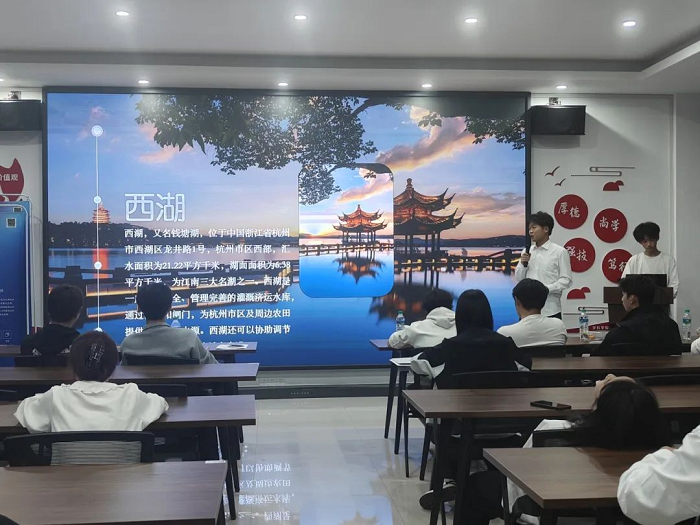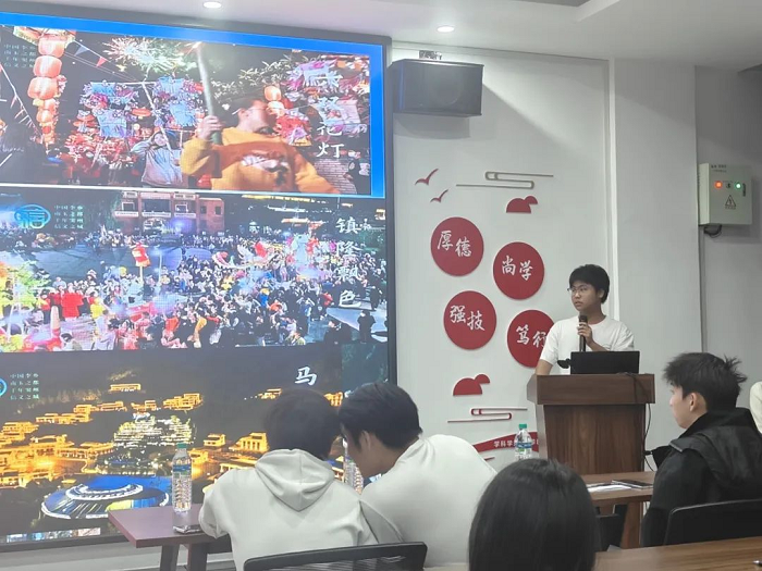 活动过程中选手按照抽签顺序进行出场,参赛小组带来特色美食供评委品尝,每组选手介绍自己的家乡,并结合PPT进行演讲,介绍家乡美食、家乡风采、家乡方言,最后进行才艺展示。