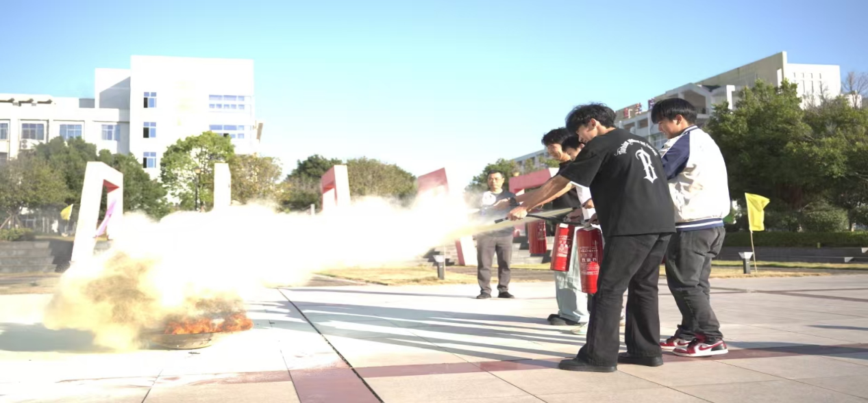 其次是消防技能实操。师生在安全区域集合后,安全保卫处工作人员详细讲解干粉灭火器的使用方法,之后,现场师生纷纷参与灭火器的实操演练,亲身体验了如何正确使用干粉灭火器,学习到灭火器的操作流程及注意事项。通过切身实践,大家增强了自我保护和应对突发火灾的能力。