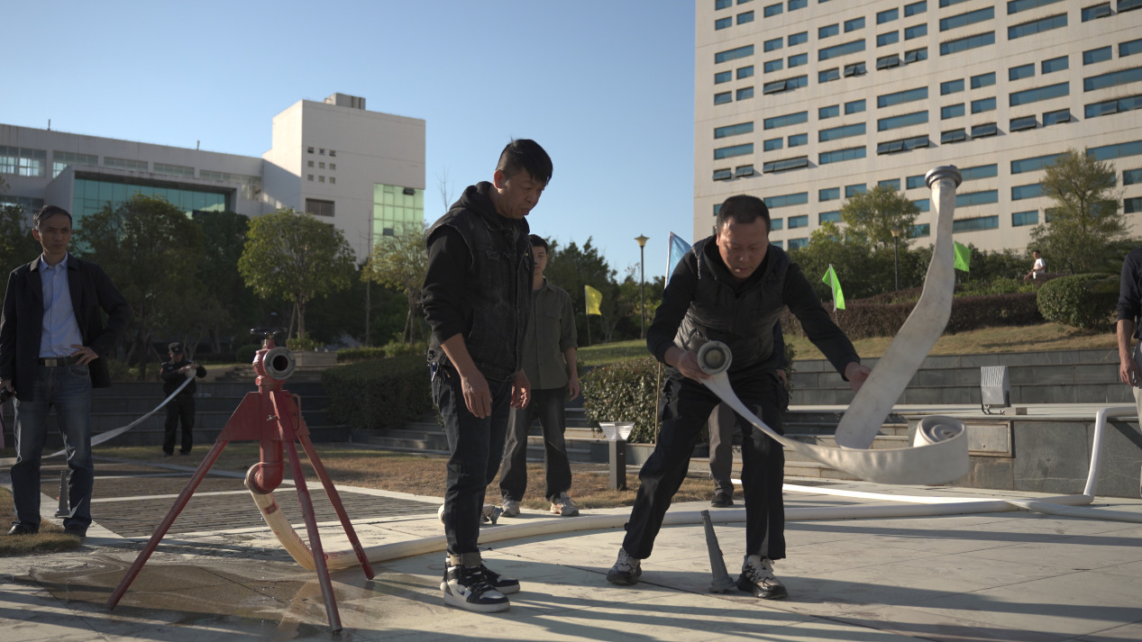 最后,由安全保卫处实操人员进行水带的出水实操演练,参与人员在指导下学习如何铺设水带、连接水源,并掌握喷水的技巧。在互动氛围中,大家积极动手实践,提升了对消防水源的认识与使用能力。