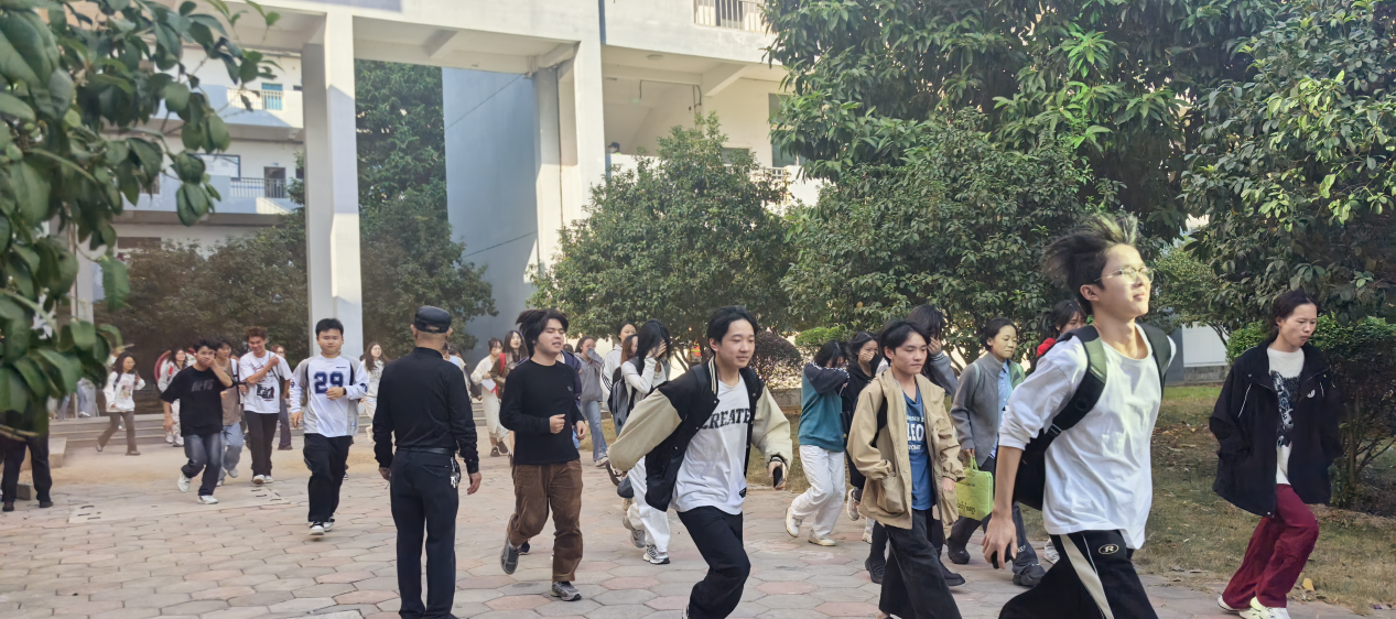 根据学校“消防宣传月”的活动安排,为持续提高师生消防安全意识,11月7日下午3时20分,我校在西实训楼和东实训楼开展了“师生应急疏散演练和消防技能实操”活动,此次活动的参与对象包括东、西实训楼教学的师生,安保处全体成员、保安、校护卫队(预备队)和校志愿者。演练旨在提高全校师生对火灾的应急响应能力,增强消防安全意识,确保在突发火灾情况下能够安全有效地进行疏散。
