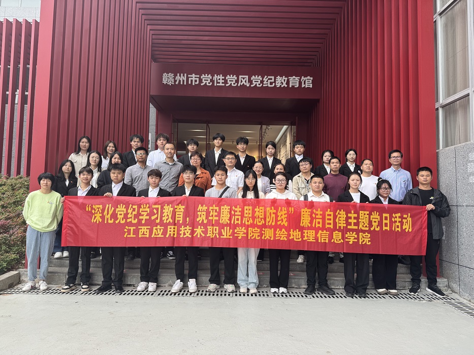 为深入学习贯彻习近平总书记关于全面加强党的纪律建设重要讲话精神,进一步强化全体党员廉洁意识,推动党纪学习教育走深走实,以及加强大学生廉洁教育,11月14日下午,测绘地理信息学院组织学院全体党员及学生干部代表共40余人前往赣州市党性党风党纪教育馆参观学习,开展“深化党纪学习教育 筑牢廉洁思想防线”廉洁自律主题党日活动。