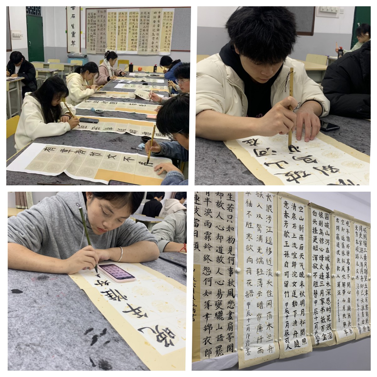 比赛开始,学生们聚精会神,用手中的笔写下一撇一捺,横平竖直、结构匀称,用心书写每一个笔画,每一个汉字,力争展现出自己最佳状态。随着时间流逝,一幅幅作品主题鲜明,风格各异、寓意深刻,集思想、艺术、观赏于一体,展现了同学们的书法实力和水平,进一步激发了同学们对书法艺术的无限热爱和执着追求。